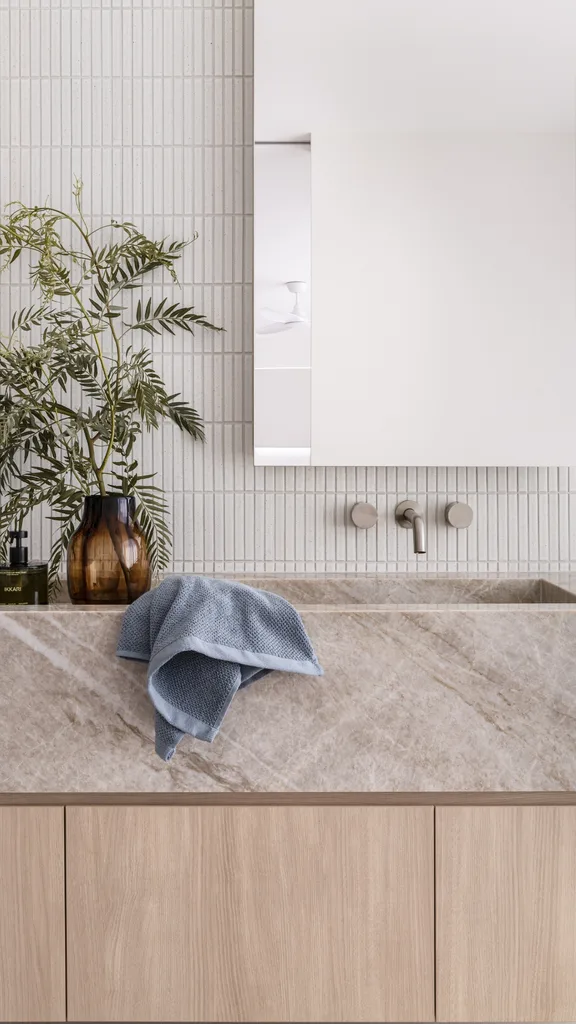 “A well-designed vanity serves as the visual anchor of the bathroom,” says Mitchell. “Materials and finishes should harmonise with the overall palette, while the basin and tapware should be complementary without stealing the show.”