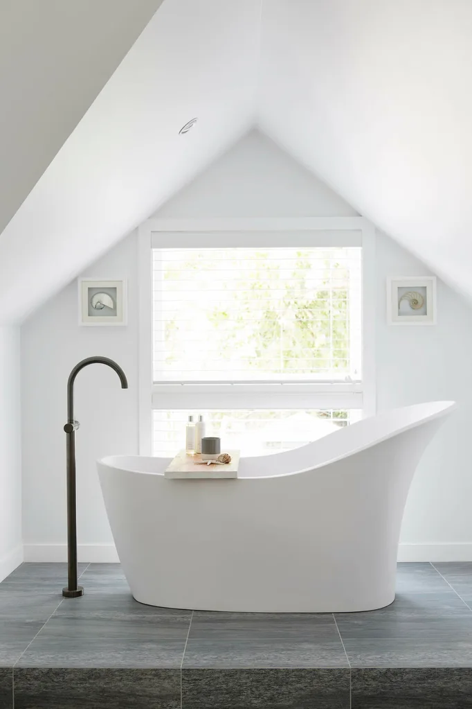 After the couple and their two teenage daughters had acclimatised in the home for a couple of years, they tweaked the existing footprint to a layout that better suited their lifestyle and needs, simultaneously refreshing the scheme with a classic and neutral aesthetic that evokes an airy calmness. A new bedroom for the couple was a major component of the works. “We wanted to walk into our bedroom and say, ‘Ahh’. That feeling of relaxation and calmness was really important,” explains the homeowner. “And I really wanted a bath overlooking the garden.” Sydney architect Michele McSharry designed a swoon-worthy set up with a freestanding tub, platform-perched and centre stage in the bedroom suite, taking in garden outlooks through the adjacent window while performing double-duty as a visual feature in its own right. The day spa vibe continues on the opposite side of the room, where a large doorless bathroom radiates easy luxury.