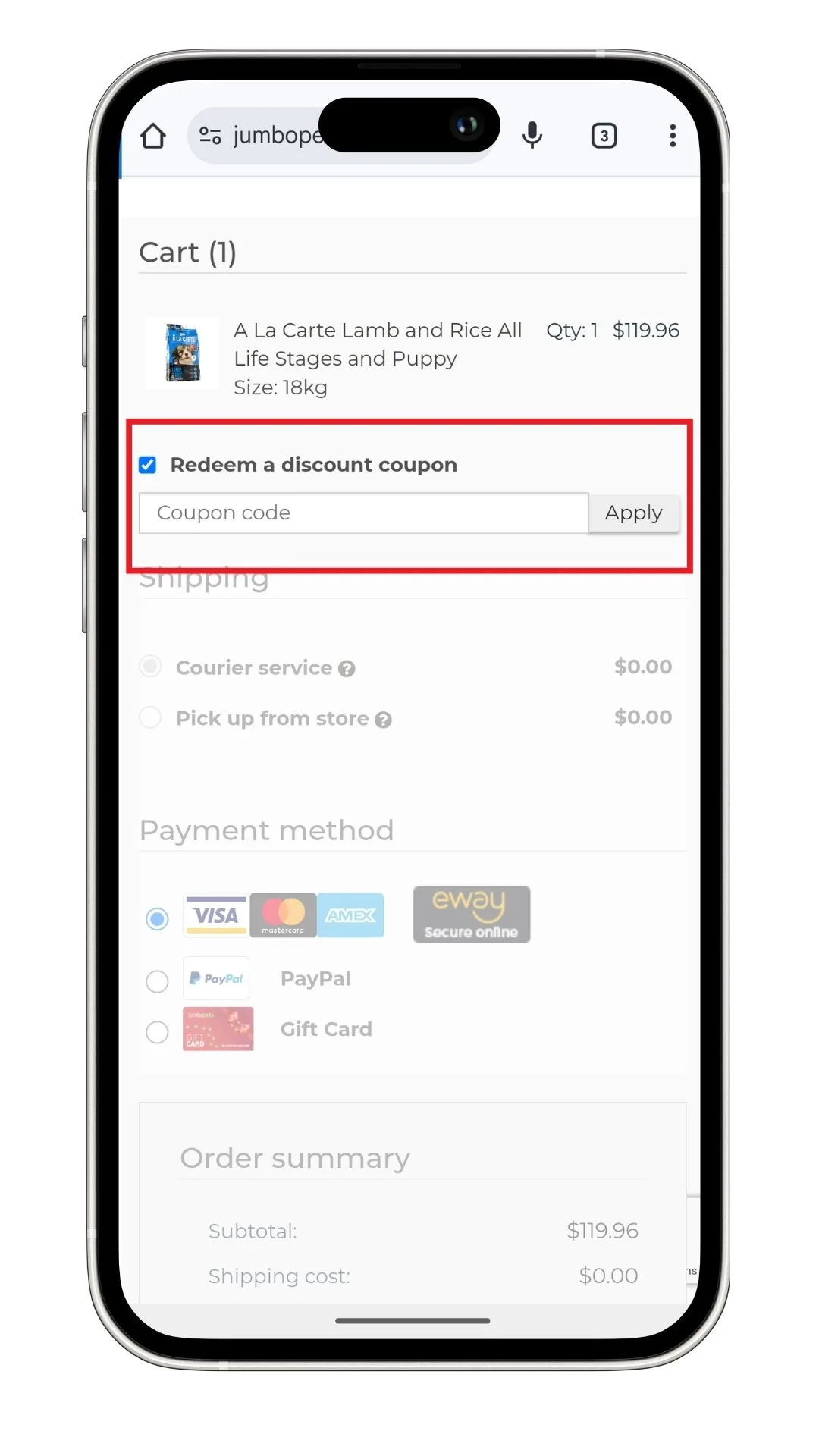 Jumbo Pets accepts a variety of payment methods including Visa, Mastercard, American Express, PayPal, BPAY and gift cards.
