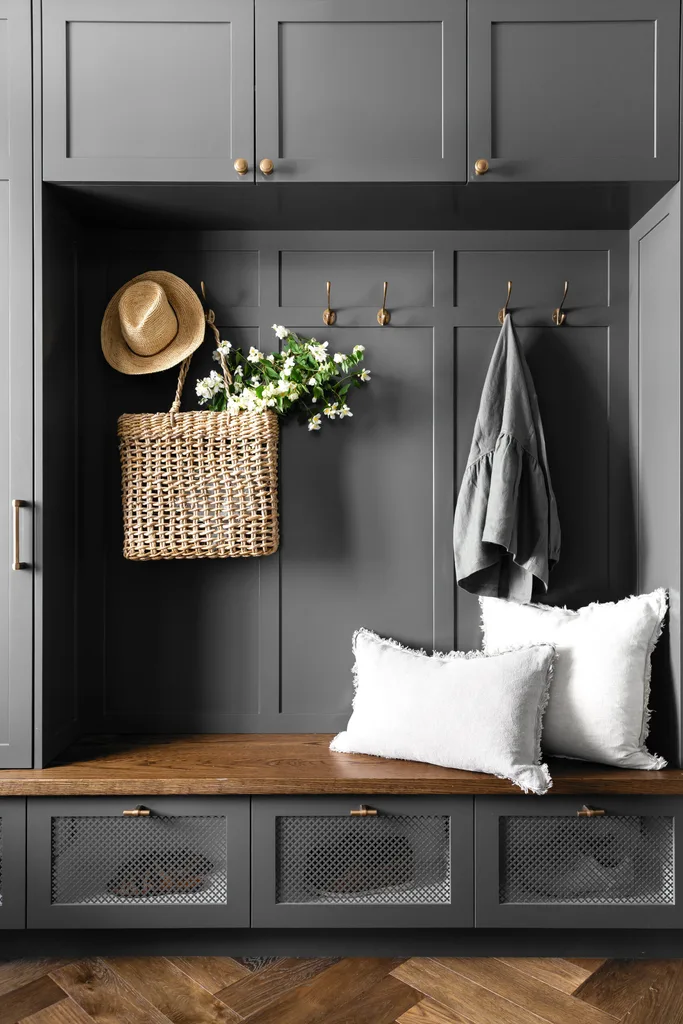 This entryway features an abundance of functional storage options. (Photographer: Simon Whitbread | Styling: Corina Koch)